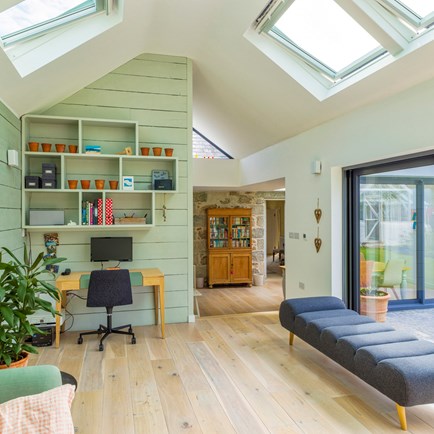 A traditional granite Guernsey cottage works in perfect harmony with a contemporary single-storey extension.