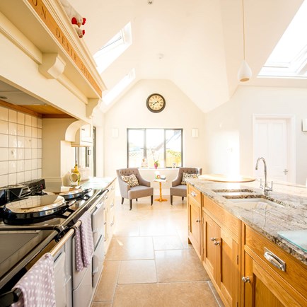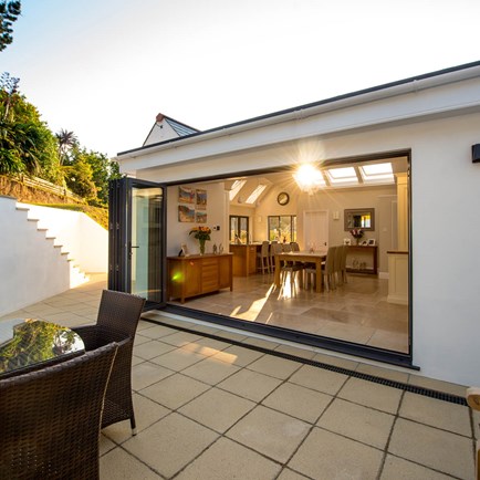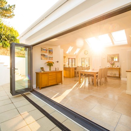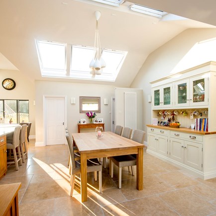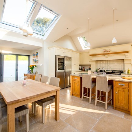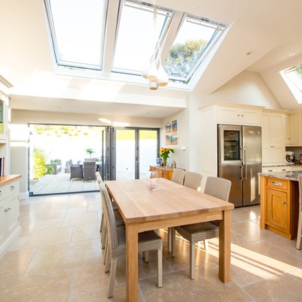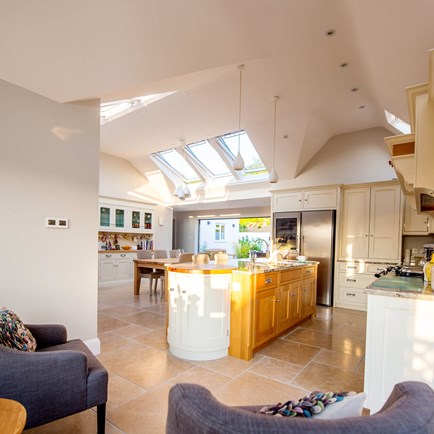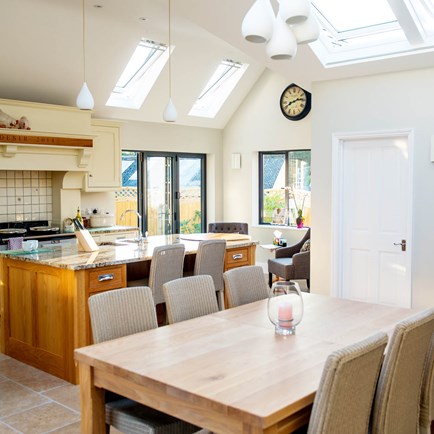 Replacing the existing conservatory with a part-glazed pitched roof extension has provided a spacious and inviting open-plan area that is the heart of the home.