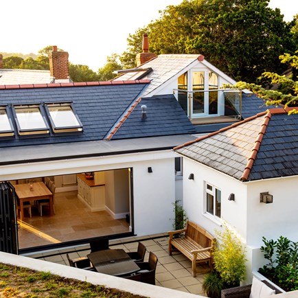The extension extends to the side of the house, providing a more accessible front door, and on the first floor a new dormer with inset balcony has added space and allowed lovely views.
