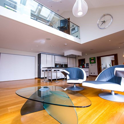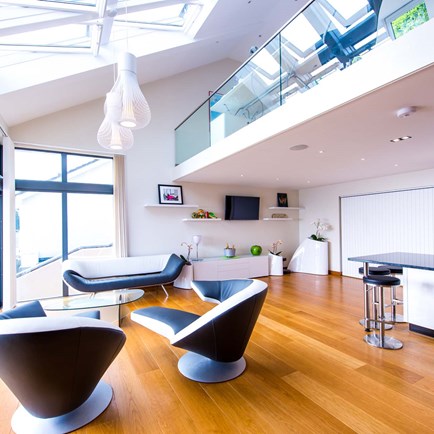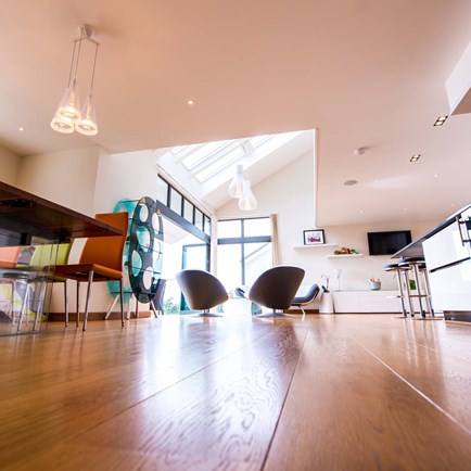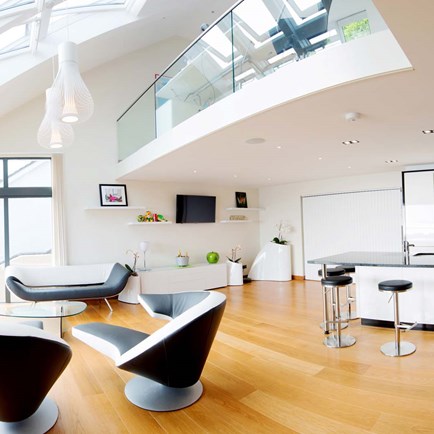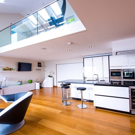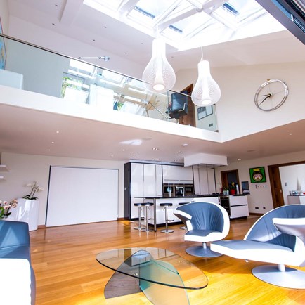 The design incorporates a large double-height space to bring light flooding in whilst creating a visual connection between the intermediate and upper floors.