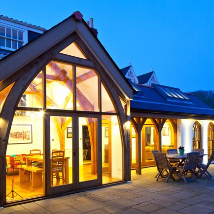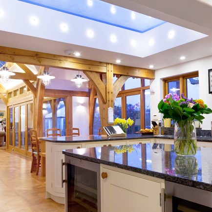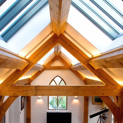 Traditional, sustainable oak was used in conjunction with SIP panels to bring together old and new technologies, allowing for a quick installation and high levels of insulation.