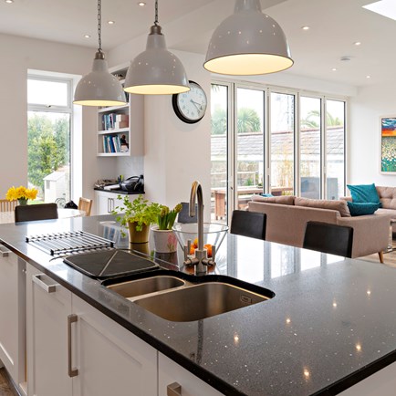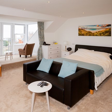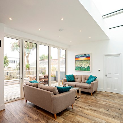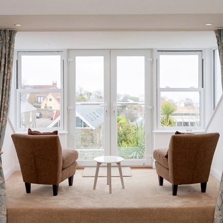 An attic conversion, dormer balcony and glazed extension have provided space and light and views of Guernsey’s coast.