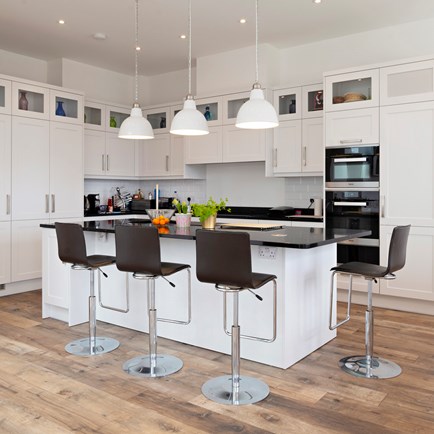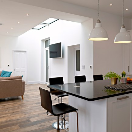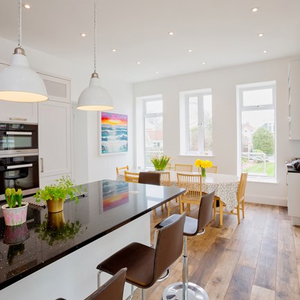 The attic now houses a master bedroom suite with dressing area and en-suite, with modification of the stairs to provide access. The rear extension provides level access onto the existing terrace and to the garden below.
