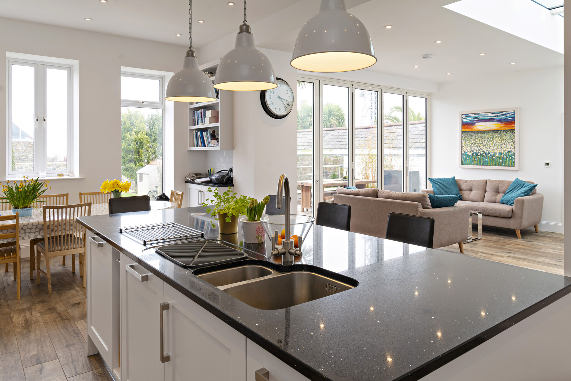 An attic conversion, dormer balcony and glazed extension have provided space and light and views of Guernsey’s coast.